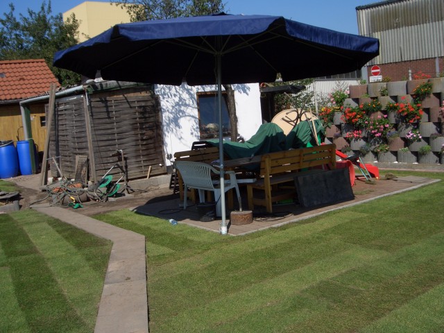 08.2005 Die zukünftige Rasenfläche ist planiert